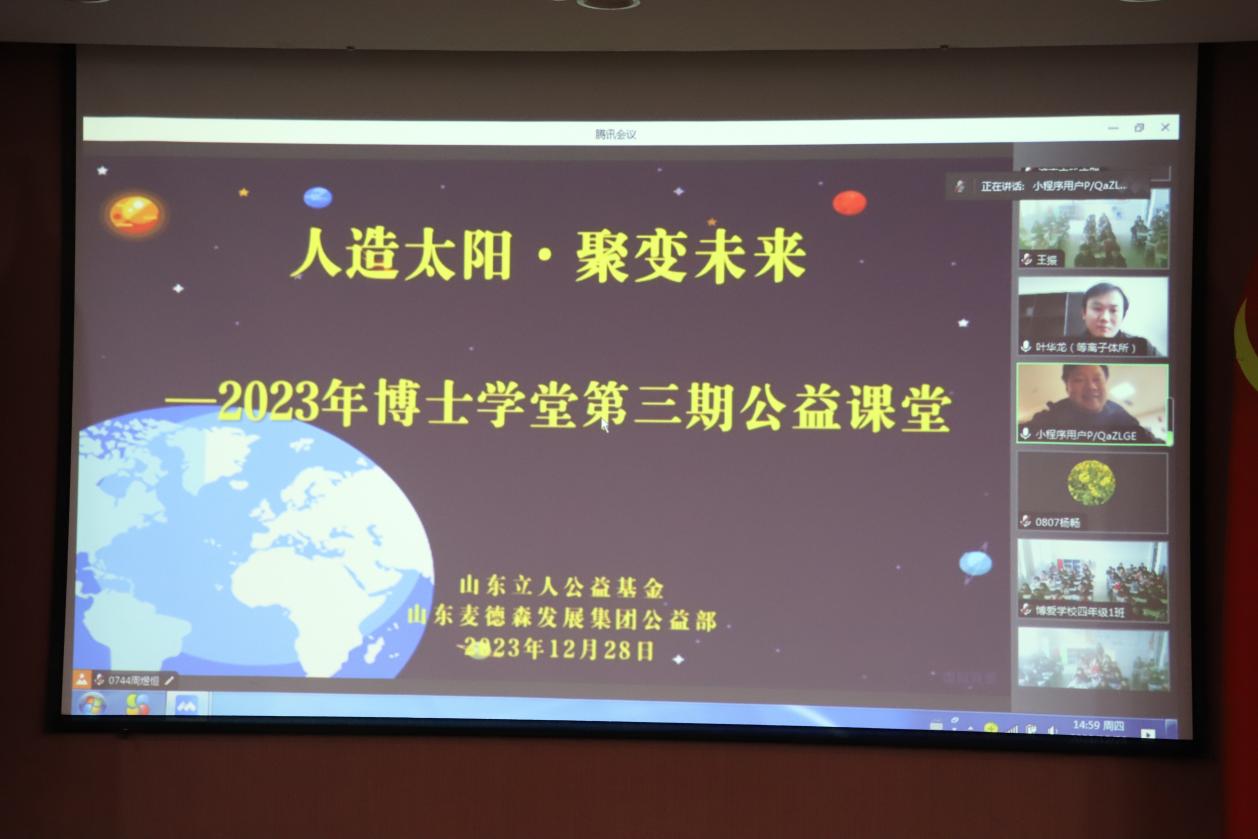 12月28日,山东麦德森发展集团有限公司、山东立人公益基金会联合开启“人造太阳·聚变未来”——第三期博士学堂公益课堂。