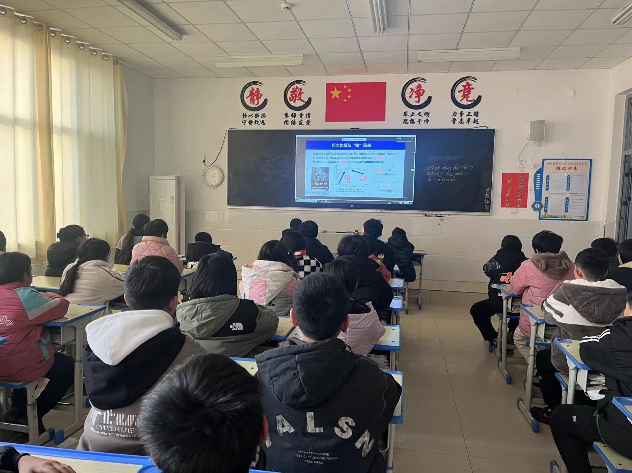 此次课程的开展旨在激发青少年好奇心、想象力、探求欲,培养学生群体的科技热情与爱国情怀。课堂上,叶华龙博士以“人造太阳·聚变未来”为主题,从核聚变与托卡马克、我国核聚变研究成果、核聚变未来发展前景三个方面,为学员们讲授了核聚变反应的相关科学知识,以生动、直观的方式介绍了东方超环EAST大科学装置、夸父设施等,增强了学员们对于核聚变能源的了解和兴趣。