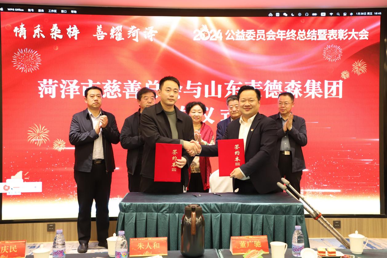 菏泽市济南两站公益委员会会长,山东麦德森发展集团党支部书记、董事长王勇出席作2023年公益委员会工作报告,并获颁菏泽市慈善总会公益行动荣誉证书。