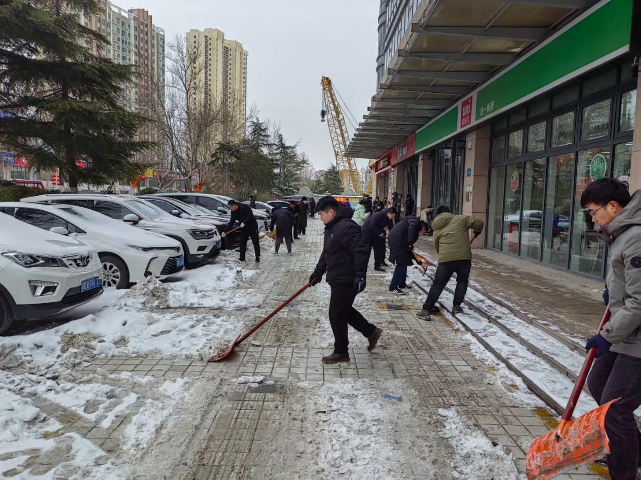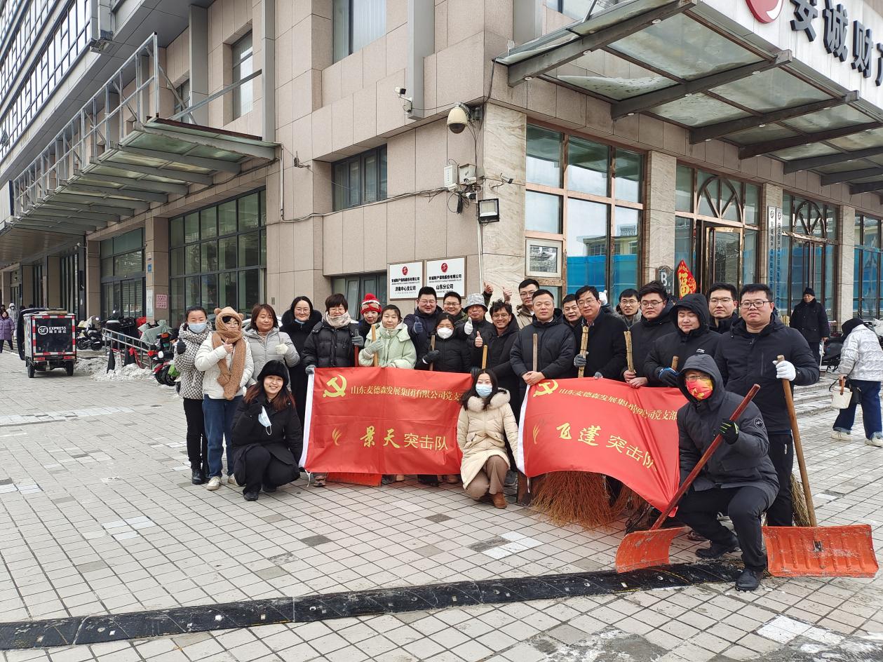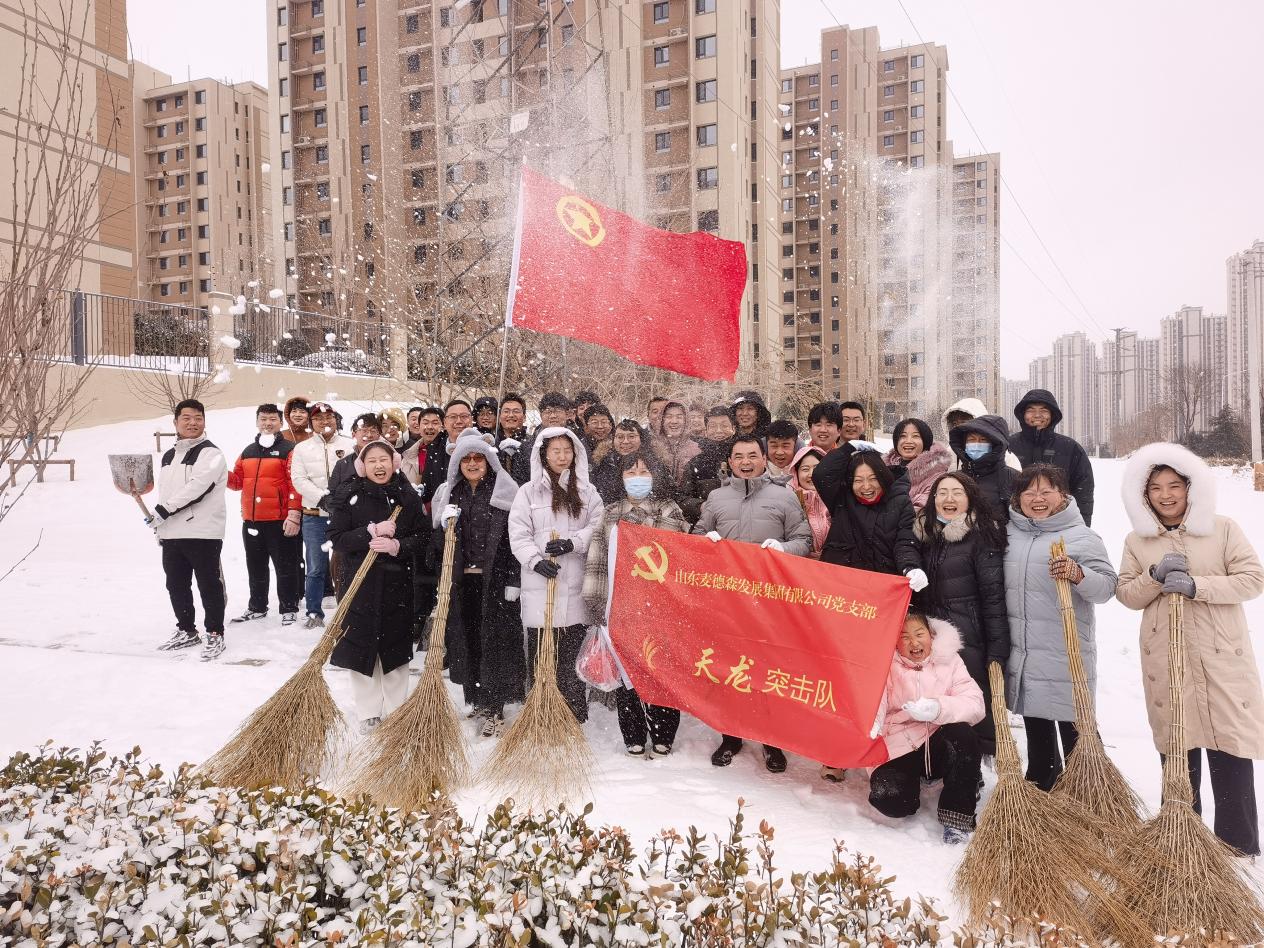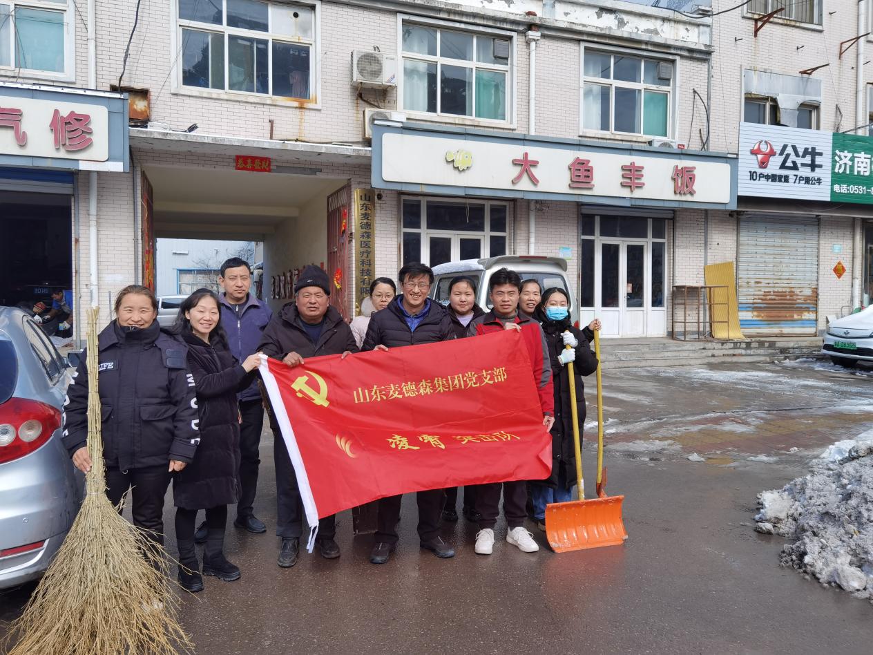 山东麦德森发展集团党支部、团委、党员突击队以“雪”为令、闻“雪”而动,在集团党支部副书记桑守正、执行董事王兴法、总经理张天君、副总经理刘学森、工会主席张晶华等集团领导带领下,天龙、景天、飞蓬、茯苓、凌霄、远志、金兰突击队140余名队员兵分多路,在集团总部、麦德森产业园、医疗科技厂区、盲手道中医诊所以及和平路北社区开展扫雪除冰志愿服务活动。