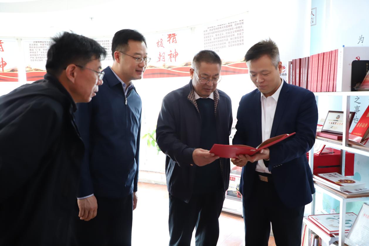 会前,在王兴法的带领下,街道志编纂人员一行对麦德森企业文化墙、党建书屋、荣誉长廊以及地方志展架进行了参观,翻阅查看了集团党支部2023版“手抄党章”、党建活动记录册、“金点子”工程建言献策汇总簿等党建材料。