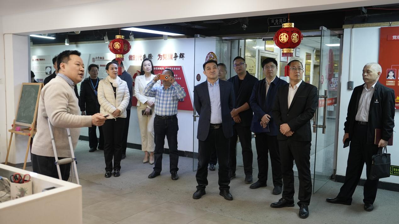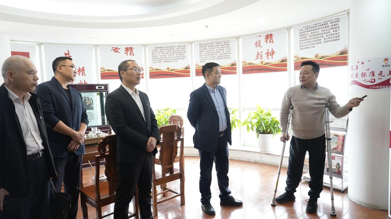 在王勇书记的引导与讲解下,区委统战部、区工商联一行对麦德森企业文化墙、党建书屋、荣誉展架等进行了参观,听取了麦德森党建引领下各产业发展历程、产业规模、未来规划等的系统汇报。