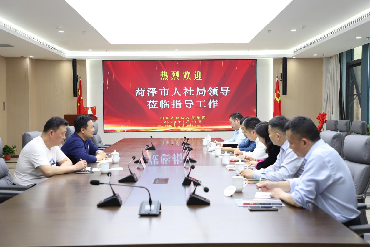4月15日,菏泽市人社局一行在菏泽返乡创业服务中心主任张庆彪的带领下莅临山东麦德森发展集团,就集团党建及各产业项目建设工作走访交流。