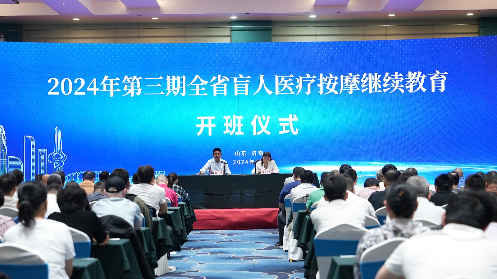 省残疾人就业指导中心主任孙勇出席开班仪式并作动员讲话,副主任霍军红主持,来自济南、泰安、德州、聊城的150余名盲人医疗按摩人员参加培训。