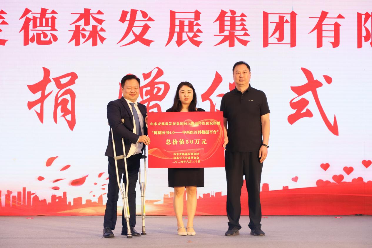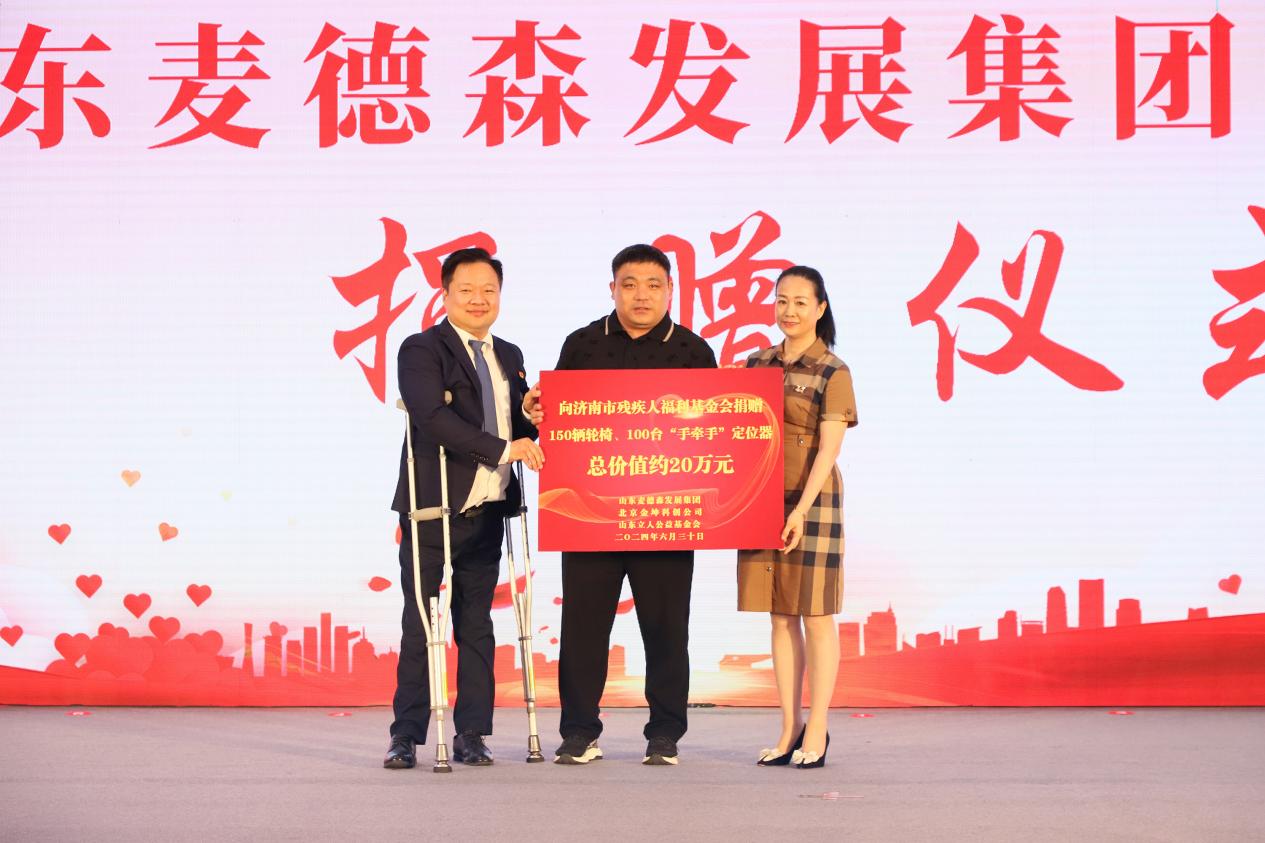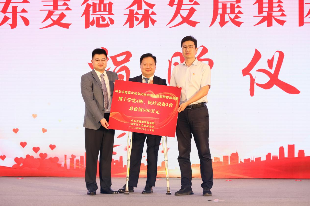 活动现场,麦德森分别向山东省援疆指挥部捐赠总价值500万元4所博士学堂及医疗设备,向济南市残疾人福利基金会捐赠总价值20万元150台轮椅与100台“手牵手”定位器,向巨野县大义镇小徐营小学捐赠总价值41万“博士学堂”、7100册图书以及研学教育基金,向巨野县中医院捐赠总价值50万元“博览医书4.0——中西医百科数据平台”使用权限。