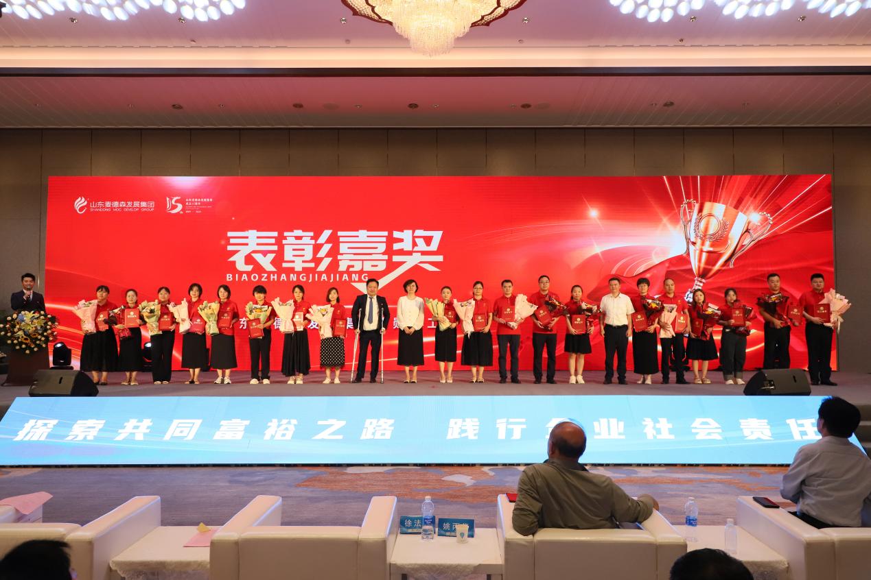 活动现场,山东麦德森发展集团党委副书记桑守正宣读《山东麦德森发展集团关于表彰“功勋员工”的决定》。王勇书记与山东省青年联合会副主席王晓文,济南市残疾人联合会党组成员、副理事长张伟共同为19名功勋员工颁奖。