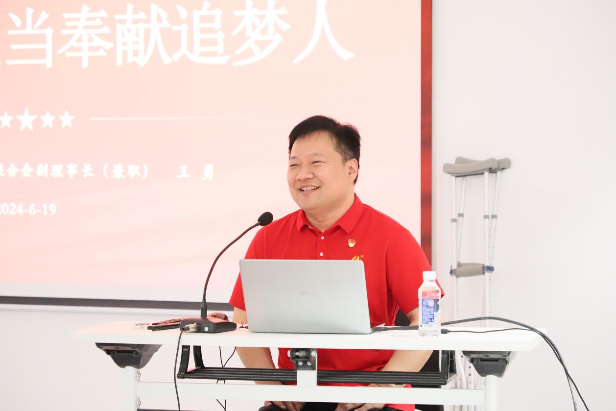 在宣讲过程中,王勇书记从“只有知识才是改变我命运的唯一途径”、“在坚持与创新中奔向成功之路”、“坚持党建引领反哺回馈社会”三个方面,生动讲述了作为一名共产党员的信仰坚守,以及作为一名残疾人企业家身残志坚、淬炼意志,拼搏奋斗、热心公益的励志故事,并鼓励现场的残疾人兄弟姐妹扬起梦想之帆,无畏困难挫折,勇敢追逐梦想,为社会贡献自己的一份力量。
