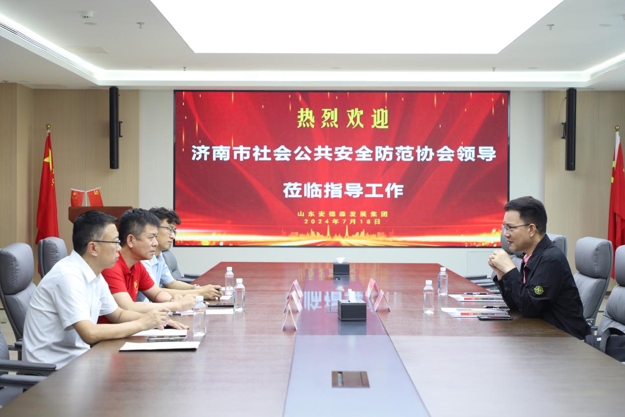 7月18日,济南市社会公共安全防范协会党支部书记兼秘书长杨中海一行莅临山东麦德森发展集团,就企业科技创新、大数据产业信息安全等进行调研。