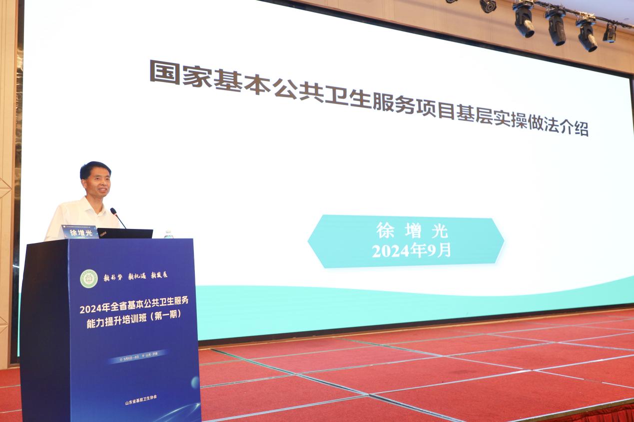 耿杰主任代表济南市卫生健康委员会,向培训班的顺利举办表示热烈祝贺,他表示近年来济南市积极推动“以基层为重点”的工作方针在卫生健康领域全面落地,不断加强基层卫生健康治理体系建设,提高基层防病治病和健康管理能力,全市基本公共卫生服务项目得到有效落实、家庭医生签约服务工作提质扩面、县域医共体建设有序推进,希望大家以此次培训为契机,进一步提升基本公共卫生服务质效,开发基层医防融合的新质生产力!