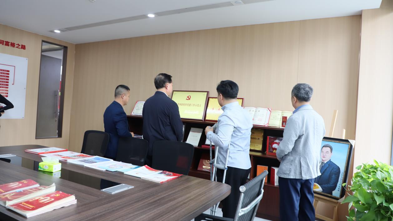 在王勇书记的引导与讲解下,考察团一行实地参观了麦德森党建活动室、“铭记百年党史,汲取奋进力量”中共山东百年历史图片展以及“凤凰于飞,与党同行”——“两新组织”麦德森党建图片展,详细了解王勇同志个人成长故事、创业经历、麦德森党建引领下的企业发展历程以及各产业项目建设、践行企业社会责任的具体实践。