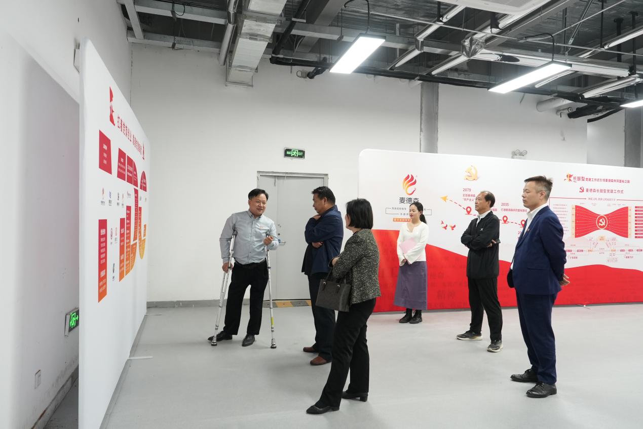 在王勇书记的引导与讲解下,济南市委宣传部、历城区文旅局一行对“铭记百年党史,汲取奋进力量”中共山东百年历史图片展、“凤凰于飞,与党同行”——“两新组织”麦德森党建图片展等进行了参观,听取了麦德森“长鼓型”党建工作式以及“创享工程1.0”改革方案,深入了解“12345678910——麦德森企业成长发展科学体系”与“1-12345678-12——麦德森人成长发展科学体系”。
