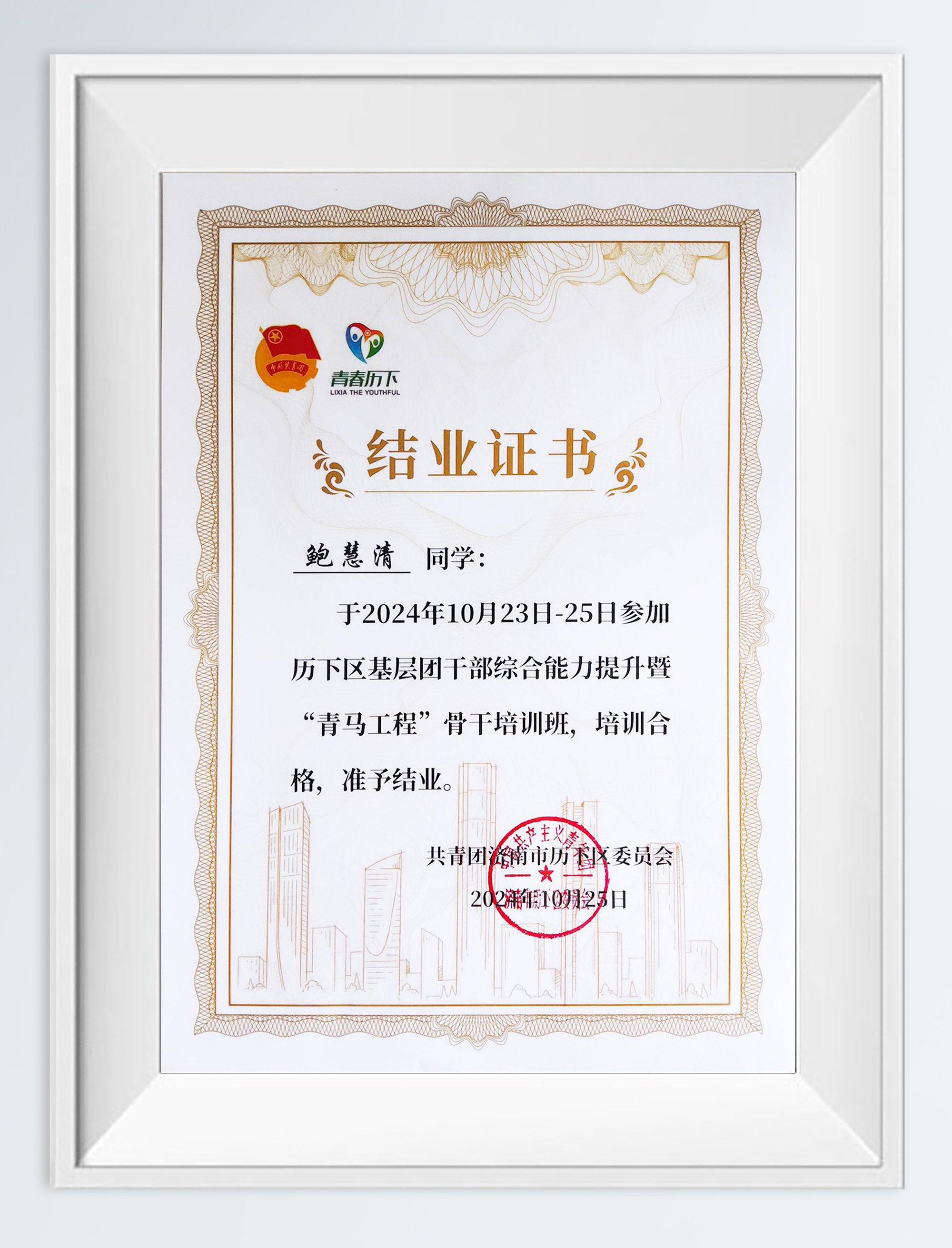 集团团委副书记鲍慧清参加2024年历下区基层团干部综合能力提升暨“青马工程”骨干培训班并顺利结业