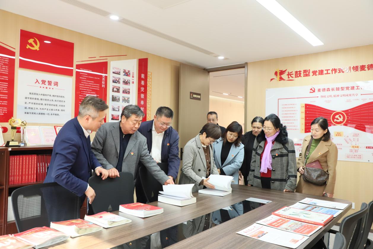 活动中,历城区档案馆党支部一行对“铭记百年党史,汲取奋进力量”中共山东百年历史图片展、“凤凰于飞,与党同行”——“两新组织”麦德森党建图片展、党建活动室以及麦德森文化传媒、博览医书办公区域等进行了参观,翻阅查看了“手抄党章”、党建活动记录册等党建材料,听取了麦德森“长鼓型”党建工作式以及“创享工程1.0”改革方案。