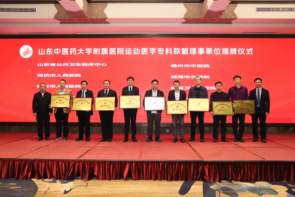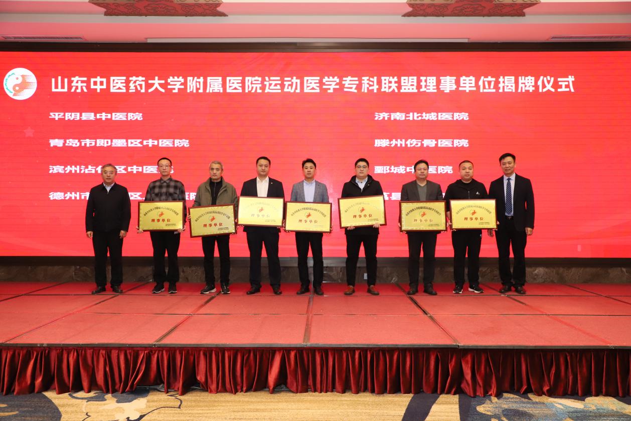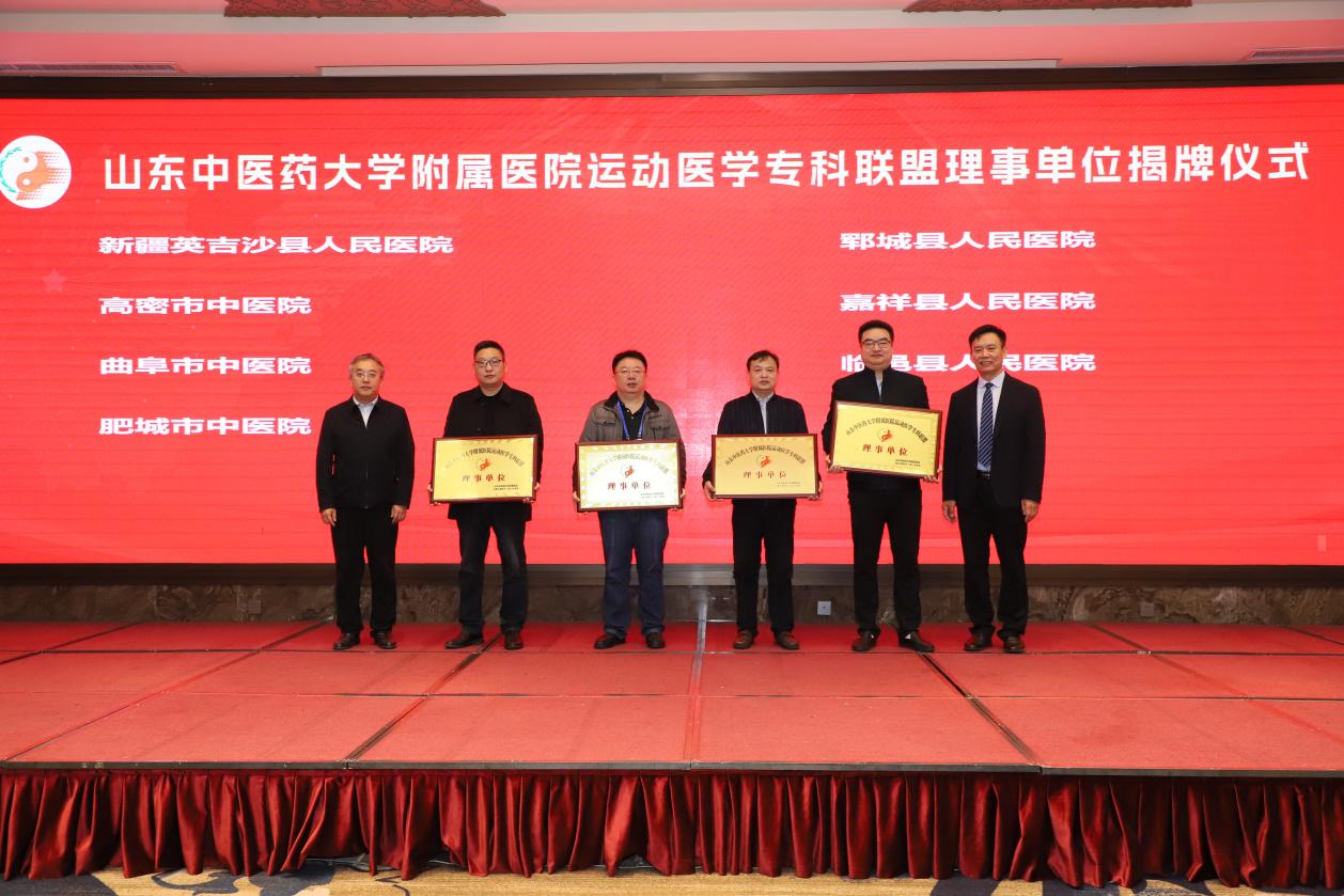 开幕式上,与会领导为第一届运动医学专业委员会主任委员,副主任委员颁发聘书。同时也为山东中医药大学附属医院运动医学专科联盟理事单位代表进行了授牌仪式。