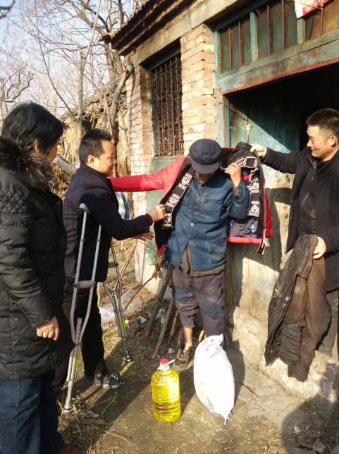 在走访过程中,王勇董事长首先向每一位乡亲拜年,祝他们在新的一年里开心、健康、平安,并向他们送去了羽绒服、食用油和面粉,希望大家能够过个幸福年。和乡亲们一起拉拉家常,说说心里话,为他们递上生活用品,亲自给退伍伤残军人穿上新衣,看到他们脸上的笑容,是王勇董事长觉得最温暖的事情。