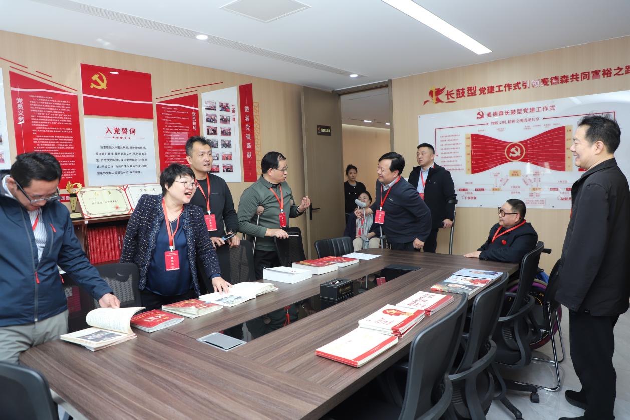 与会人员一行走访参观了麦德森党群活动室、“铭记百年党史,汲取奋进力量”中共山东百年历史图片展、“凤凰于飞,与党同行”——“两新组织”麦德森党建图片展以及各产业部门办公区域,对集团党务工作,史志出版、“博览医书”中医药大数据等产业板块进行详细了解。