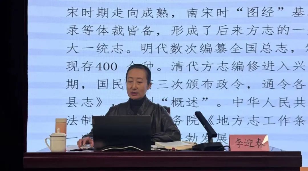 动员会结束后,烟台市委党史研究院二级调研员李迎春作专题辅导。李迎春立足新时代史志工作要求,从方志性质、修志意义、方志体例、编修流程、篇目设置、资料工作、编纂原则、志书排版、方志精神等方面系统阐述了志鉴编纂的理论精髓和实践要领。
