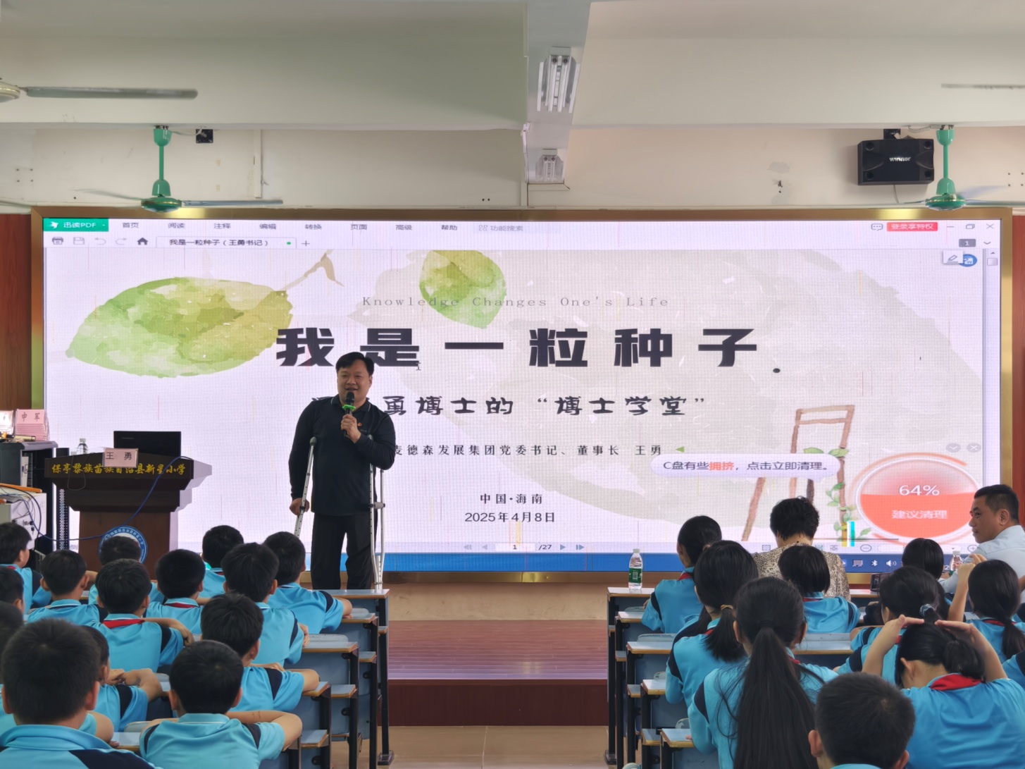 4月8日,一场以“知识改变命运,榜样引领方向——‘博士学堂’公益励志课堂走进海南保亭”为主题的公益宣讲活动在海南省保亭黎族苗族自治县新星小学温情启幕。
