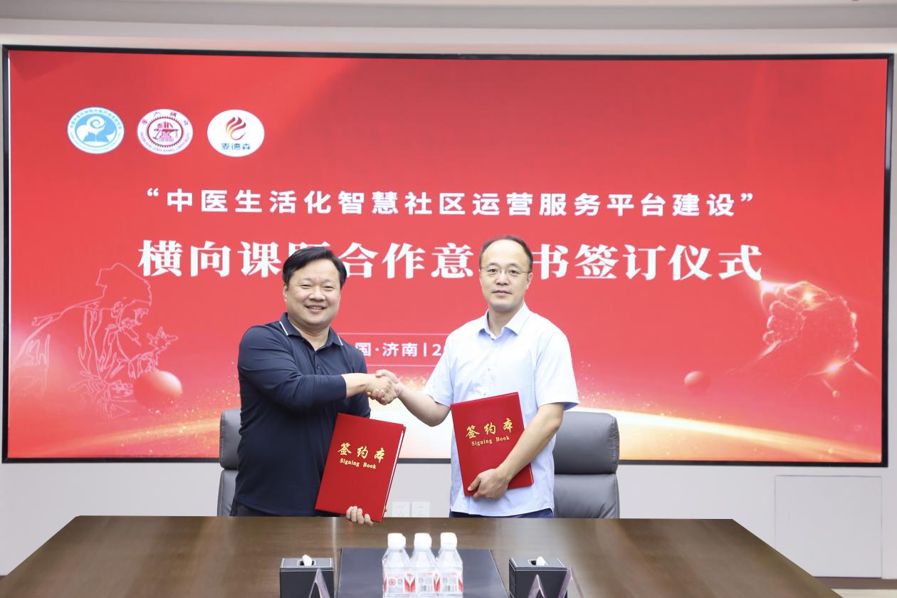 会议现场,王勇书记与中国中医科学院中医药信息研究所大健康智能研发中心主任李敬华签订“中医生活化智慧社区运营服务平台建设”横向课题合作意向书。