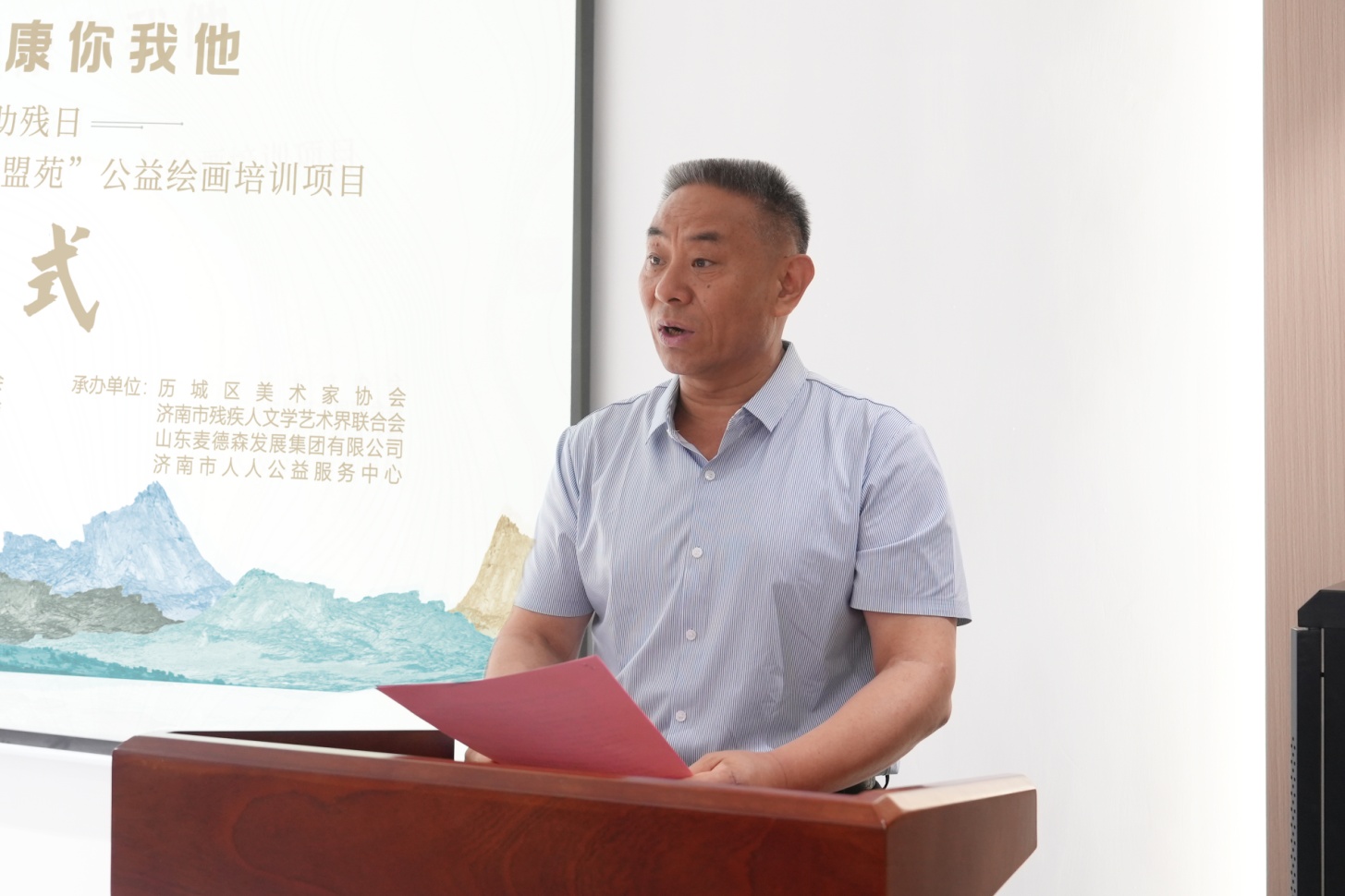 5月16日,在第35次全国助残日即将到来之际,2025年度济南市残疾人第八期“艺盟苑”公益绘画培训项目启动仪式在山东麦德森产业园举行。