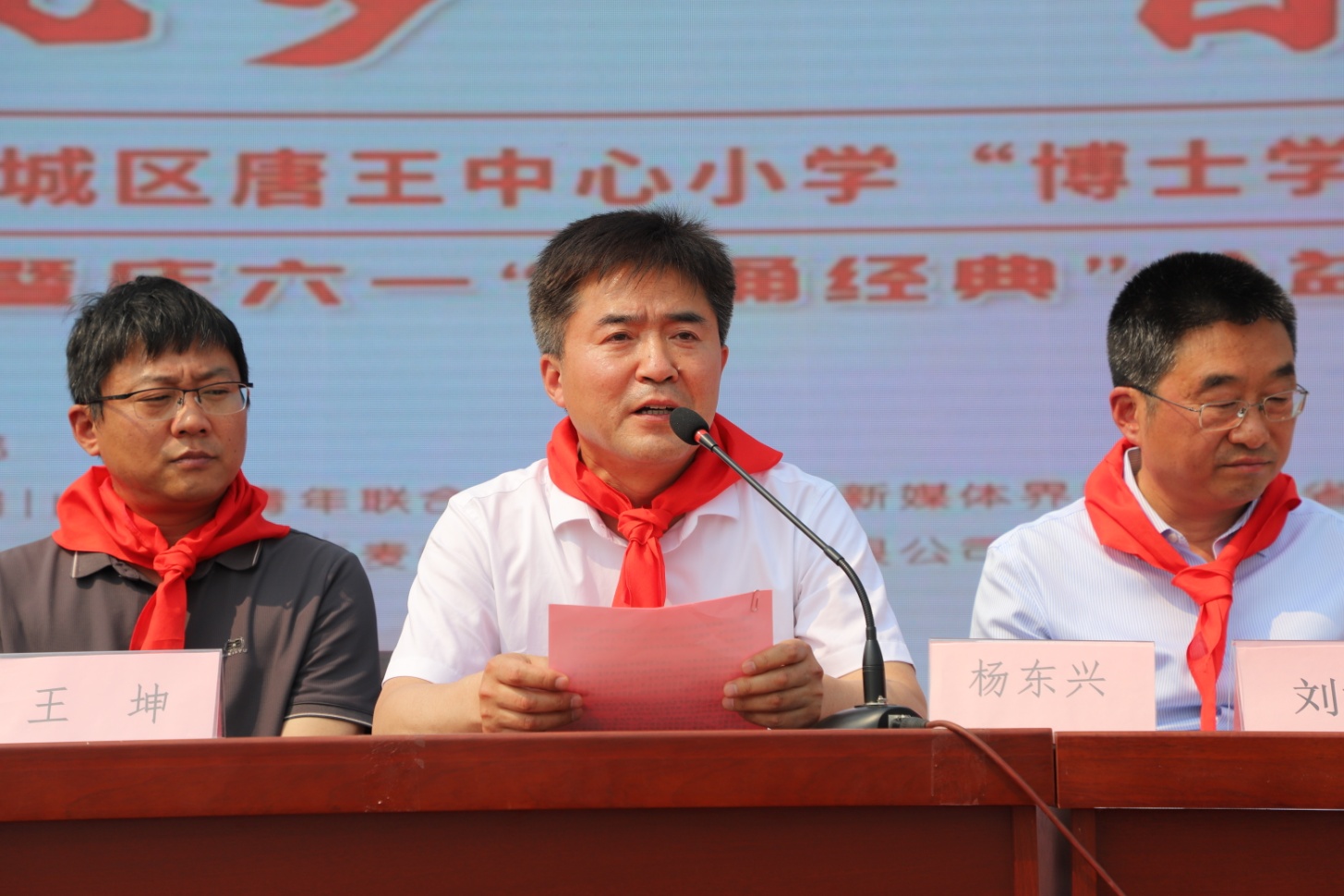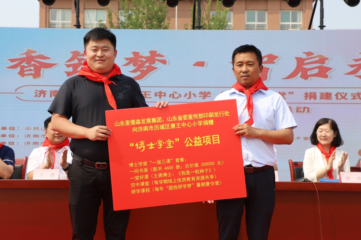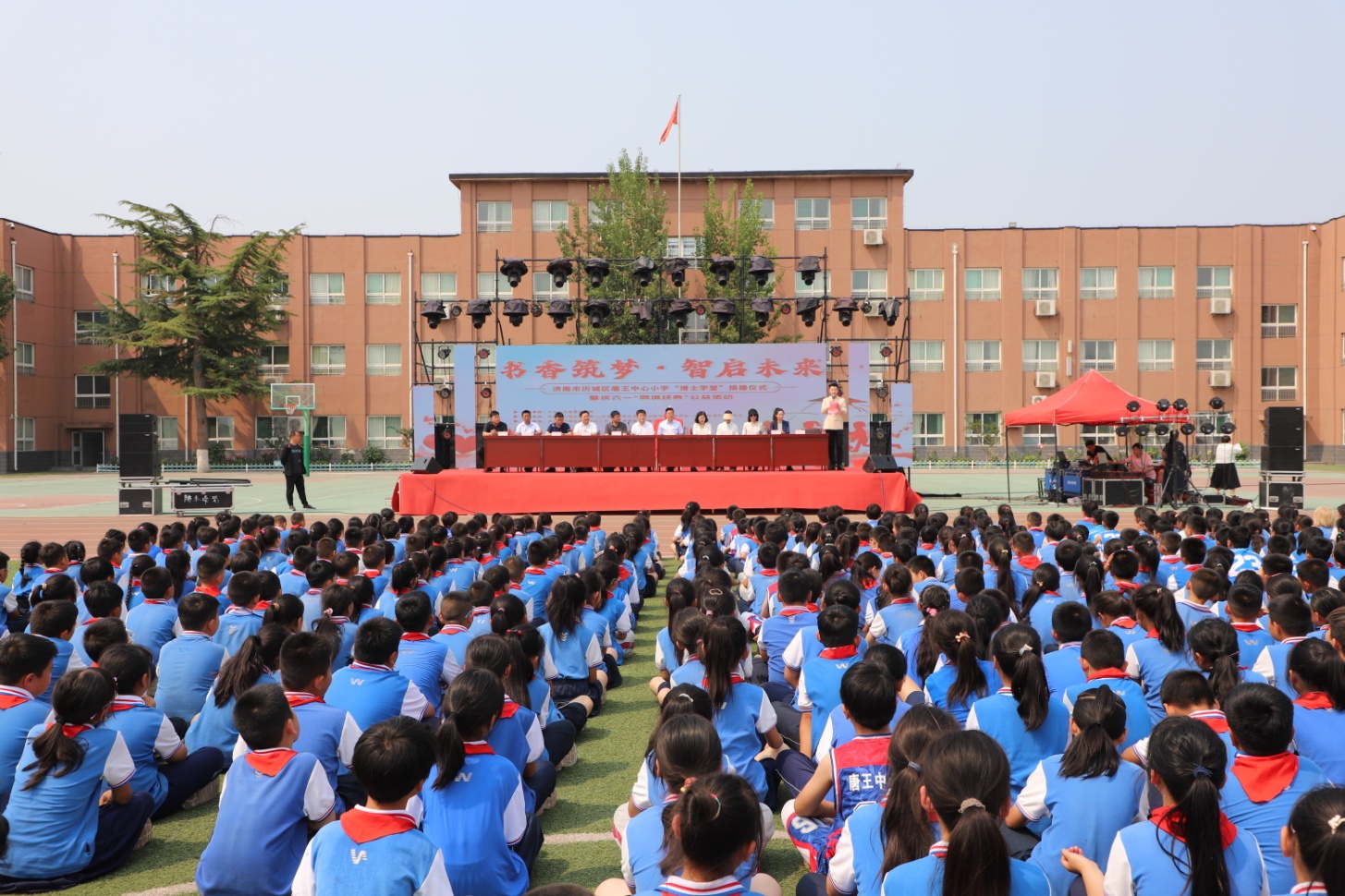5月28日,在“六·一”国际儿童节即将到来之际,“书香筑梦•智启未来——济南市历城区唐王中心小学‘博士学堂’捐建仪式暨庆六一‘同诵经典’公益活动”在唐王中心小学南校区操场举行。