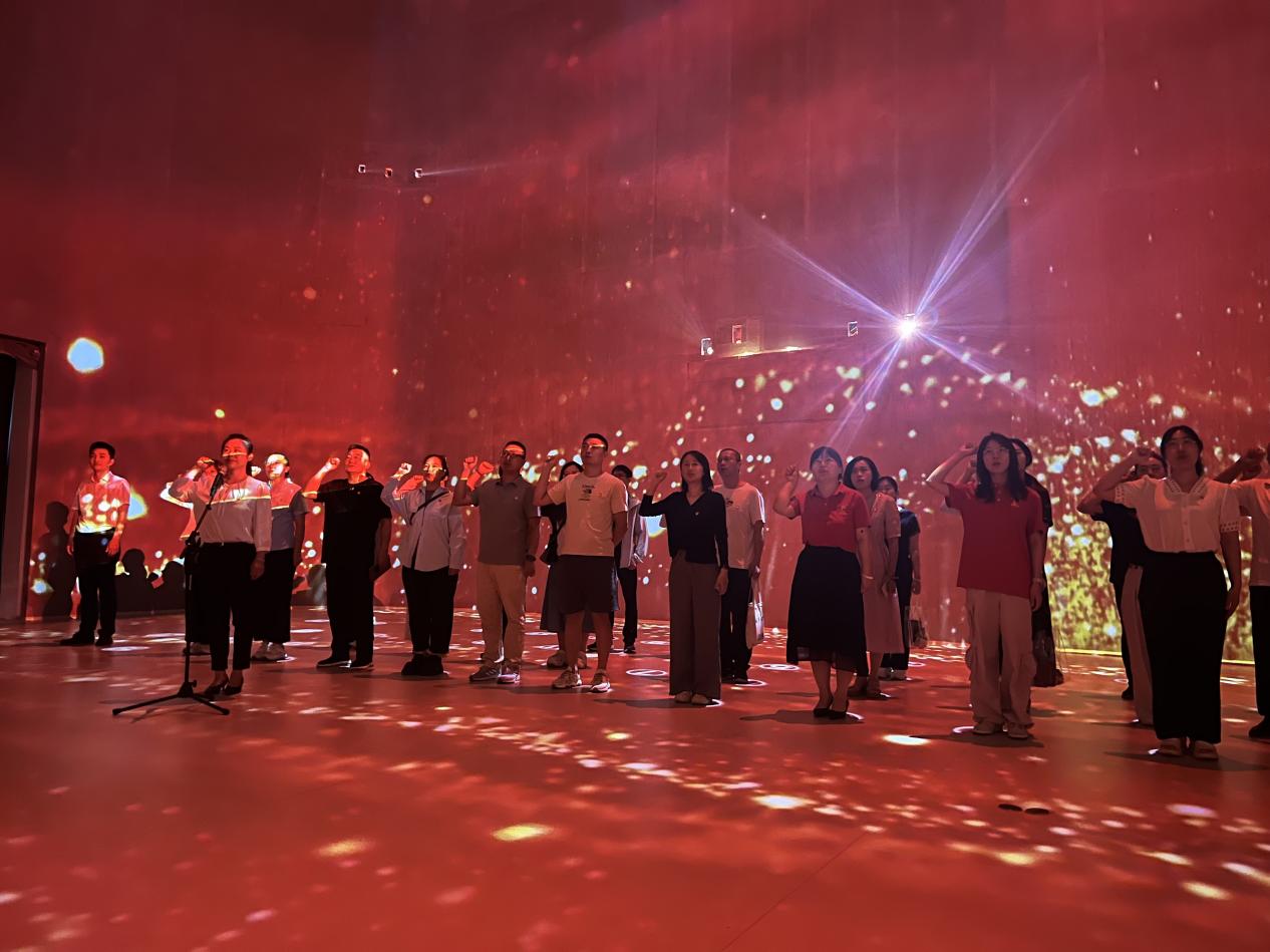 参观结束后,在锦绣天地西社区书记赵娣同志的领誓下,全体党员面向党旗,紧握右拳,重温入党誓词,进一步坚定理想信念、牢记初心使命。