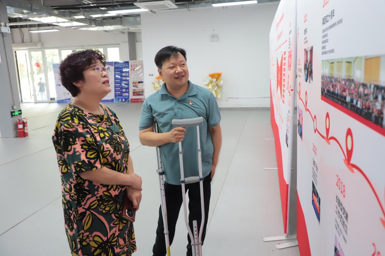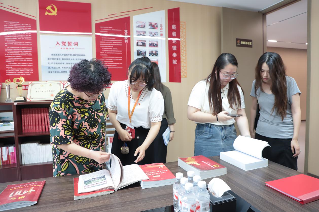 山东财经大学计算机与人工智能学院党委一行参观了“铭记百年党史,汲取奋进力量”中共山东百年历史图片展、“凤凰于飞,与党同行”——“两新组织”麦德森党建图片展、党建活动室以及麦德森文化传媒、博览医书办公区域,听取了王勇书记关于个人成长、创业经历、“长鼓型”党建工作模式等党务工作、业务工作情况汇报。