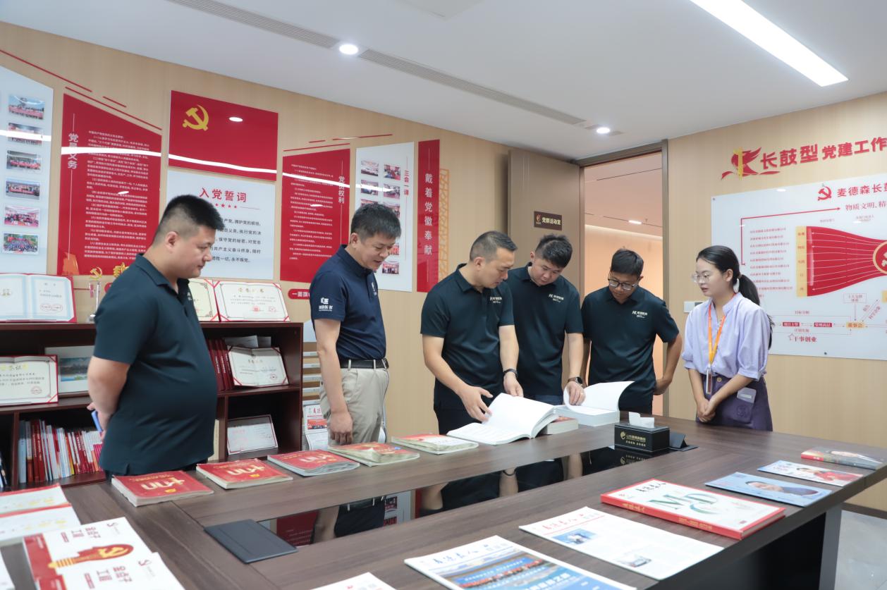 调研期间,海浪教育集团一行参观了麦德森党建活动室、党建文化展厅以及各产业部门办公区域,对麦德森党务工作,史志出版、档案数字化、中医药大数据、医学教育出版等产业项目进行详细了解。