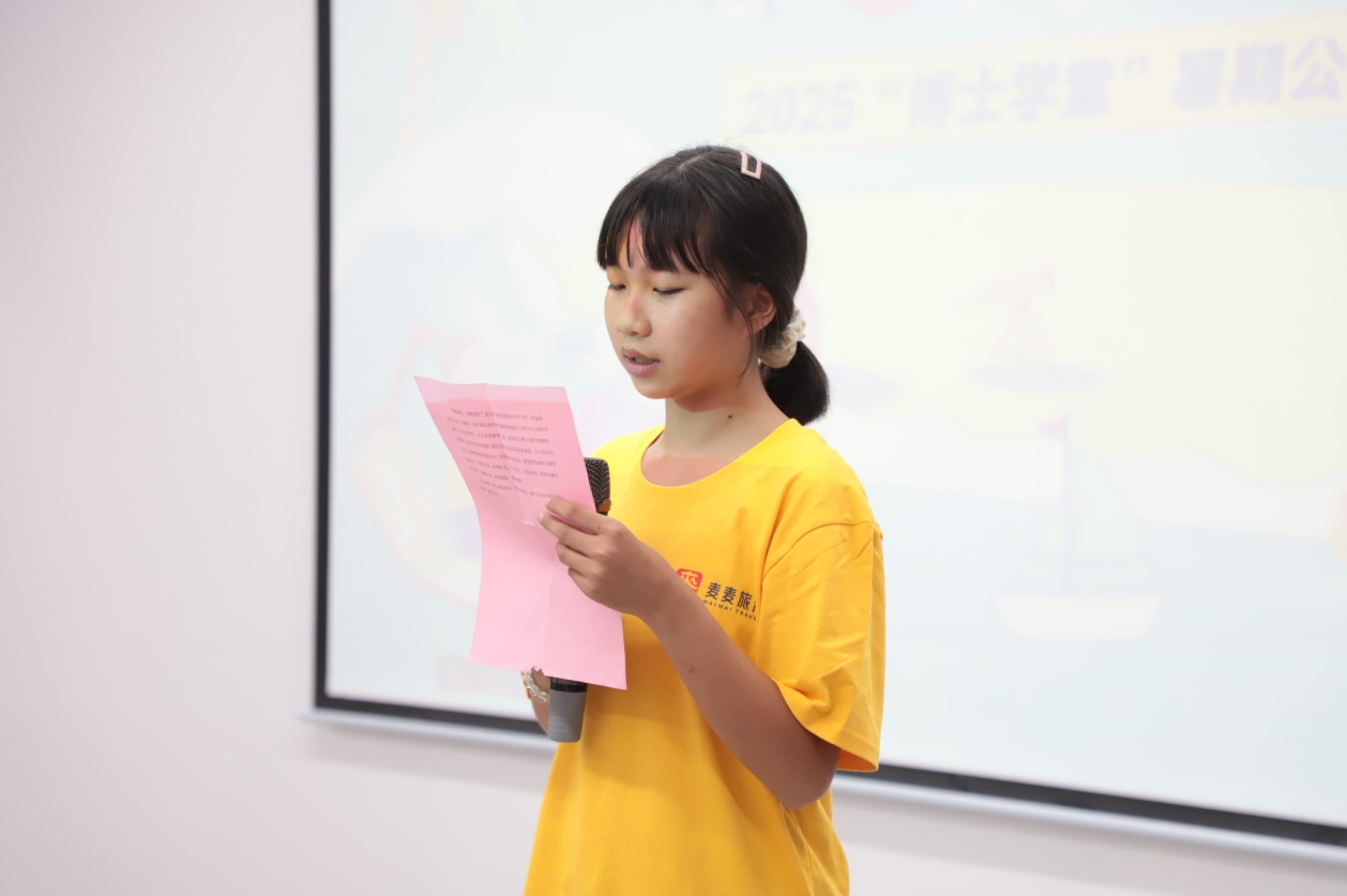 活动中,学堂负责人代表、重庆市武隆区庙垭乡中心小学副校长冉永来分享了“博士学堂”为山区教育带来的积极变化;5位学员代表依次发言,表达了参与成长营的激动心情和对未来的期待。