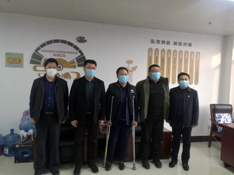 2月20日,我集团党支部书记王勇博士带领企业员工来到济南市民营企业服务队钢城区队,向服务队同志们捐赠消毒液等总金额八千余元的抗疫物资,并围绕现阶段疫情防控工作与钢城区区委常委、组织部部长王璞,区委组织部副部长、编办主任吴茂呈等交流座谈。