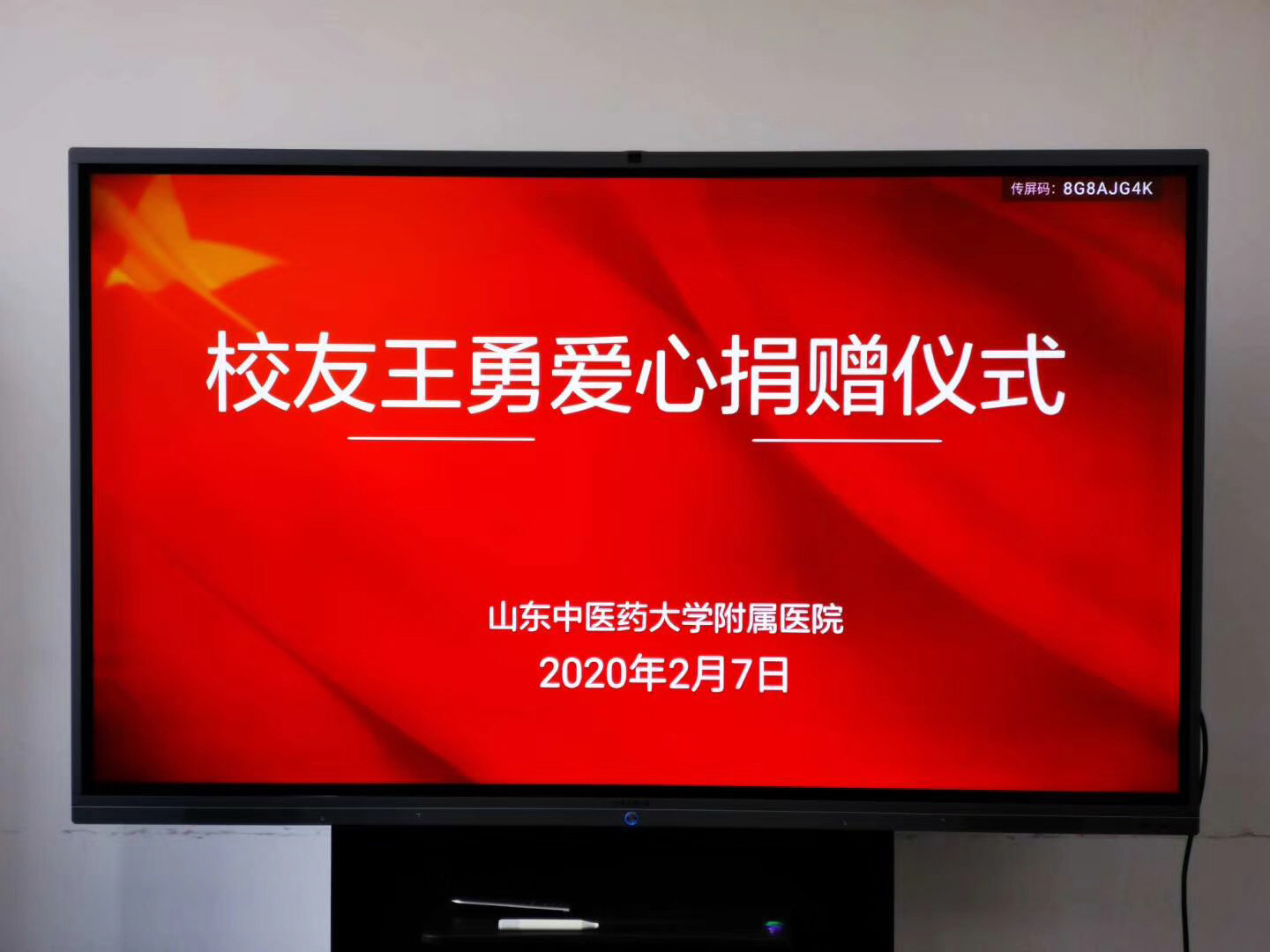 2月7日上午,“校友王勇爱心捐赠仪式”在山东省中医药大学附属医院举行,我集团党支部书记王勇博士带领企业员工向省中医捐赠FFP2口罩等价值两万元的防疫物资,助力疫情防控工作。王勇博士表示,奋战在一线的医务工作者是这场防疫阻击战最辛苦的人!我们在一起!向老师、同学以及所有最可爱的人致敬!