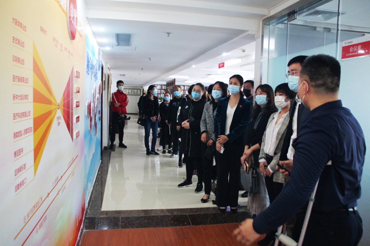 在王勇博士的陪同下,省残联机关单位各位领导先后参观了我集团企业文化墙、党建活动室、疫情防控考勤点、残疾人文化长廊以及各业务职能部门办公区域,对我集团疫情防控期间复工复产工作、企业党建和企业文化建设以及助残事业发展等情况进行了深入了解,并详细察看了企业“疫情防控工作”系列文件、支部党员“手抄党章”、“共青团组织实践活动”材料等支部党建资料和企业复工复产材料。