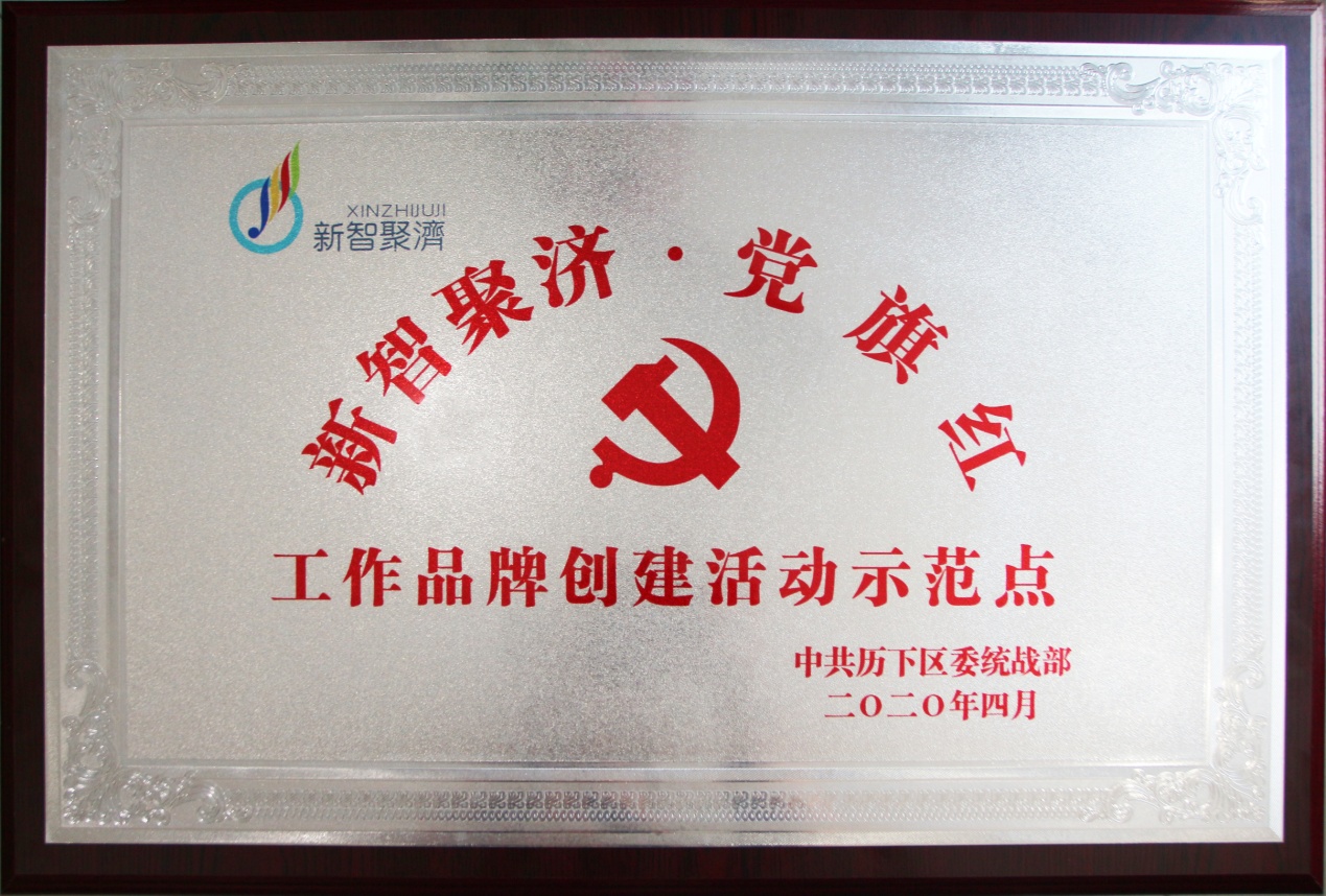会上,根据《关于在新的社会阶层组织中开展“新智聚济·党旗红”工作品牌创建活动的实施方案》(历下统发﹝2018﹞6号)文件,经各街道党工委推荐,区委统战部研究,我集团等12个单位被授予“新智聚济·党旗红”工作品牌创建活动区级示范点,集团党支部组织委员张园园代表集团党支部现场领取荣誉奖牌。
