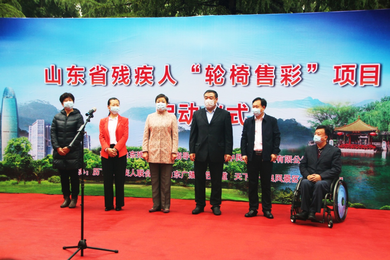 5月8日,在第三十次全国助残日来临之际,山东省残疾人“轮椅售彩”项目启动仪式在济南市天下第一泉风景区大明湖西南门小广场举行。