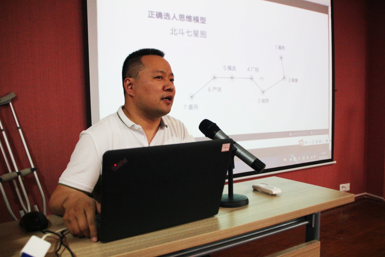 此次课程,集团党支部书记王勇博士围绕“使命、愿景、价值观”“胜任力模型”“筑巢引凤”“兵多将强”“找到高绩效人才”“依法治企”“让别人为你工作”等七大板块为大家讲授了一堂精彩的“招才选将”课程。