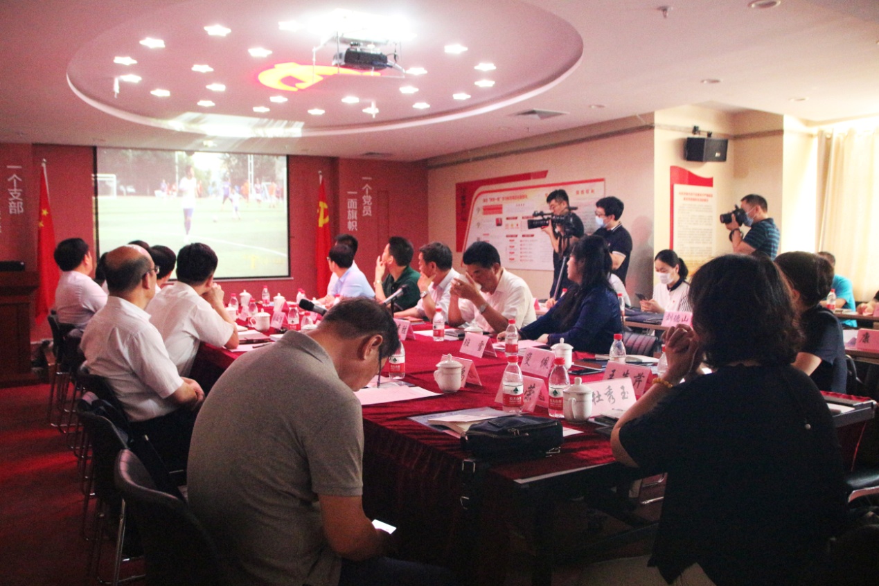 郭之祥等各位领导观看山东省委组织部制作的反映王勇博士个人自强不息精神和事迹的纪录片《榜样》。