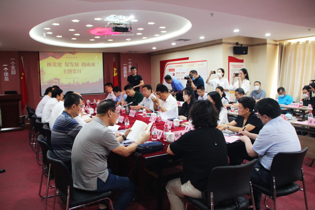 在党群活动室,省、市、区三级市场监管局领导、与会的个体私营企业负责人共50多人,就“抓党建、促发展、助成效”联合主题党日举行座谈,省个体私营经济发展促进处处长孙乐平主持座谈会。