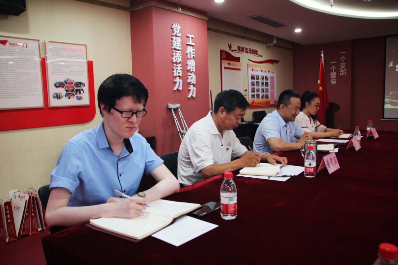 随后,山东省委组织部党员代表与“全国自强模范”代表、“中国青年五四奖章”获得者、山东省优秀共产党员、我集团党支部书记王勇博士等企业代表在党群活动室共同举行“努力奔跑、勇敢追梦”主题党日座谈会。
