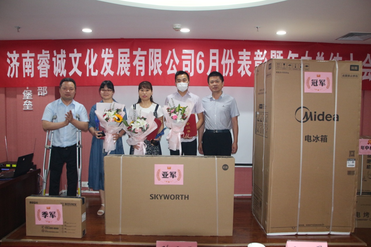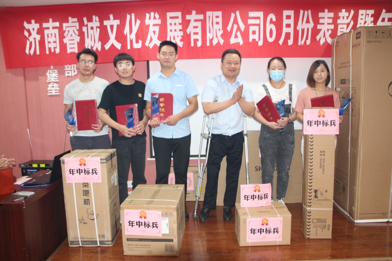 上半年,济南睿诚文化发展有限公司的销售业绩也取得可喜成绩,同比上半年增长30%。7月18日,“济南睿诚文化发展有限公司6月表彰暨年中总结大会”在总部多功能会议室举行。集团党支部书记王勇博士、执行董事王兴法、总经理张天君等企业领导出席大会,并为获奖同事颁奖。