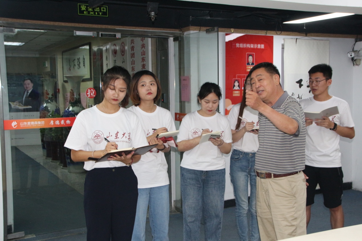 8月3日,山东大学硕博服务团二队在队长郝婉莹的带领下来我集团开展“落实发展理念,加快经济复苏”参观学习活动。集团党支部书记王勇博士、副书记桑守正等陪同参观。