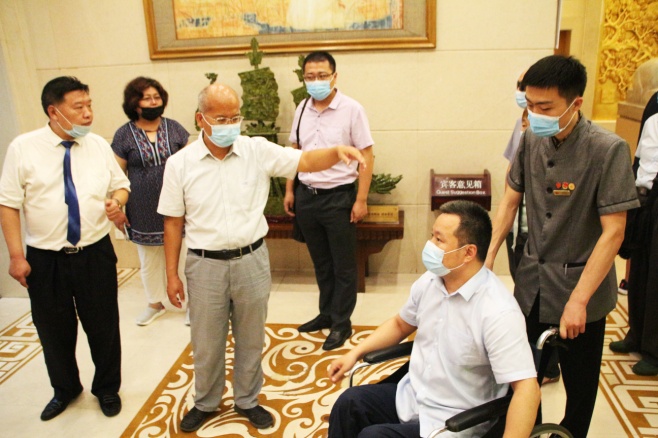 在全国第十一次肢残人活动日到来之际,8月6日,济南市残联、市发改委、市住建局、市交通运输局、市文旅、市商务局等单位负责同志,市人大代表、市政协委员、山东建筑大学无障碍研究所专家等携济南市无障碍环境建设督导队深入市中区政务服务中心、济南市长途汽车总站、恒隆广场、舜耕山庄等地开展无障碍环境建设体验督导工作。济南市肢体残疾人协会主席、我集团党支部书记王勇博士全程参与体验督导。
