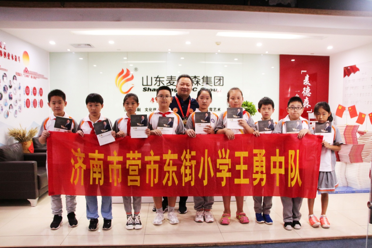 9月13日,济南市营市东街小学王勇中队少先队员们来到麦德森集团参观学习。“王勇中队”主人公、集团党支部书记王勇博士引导少先队员们对集团总部进行了参观。