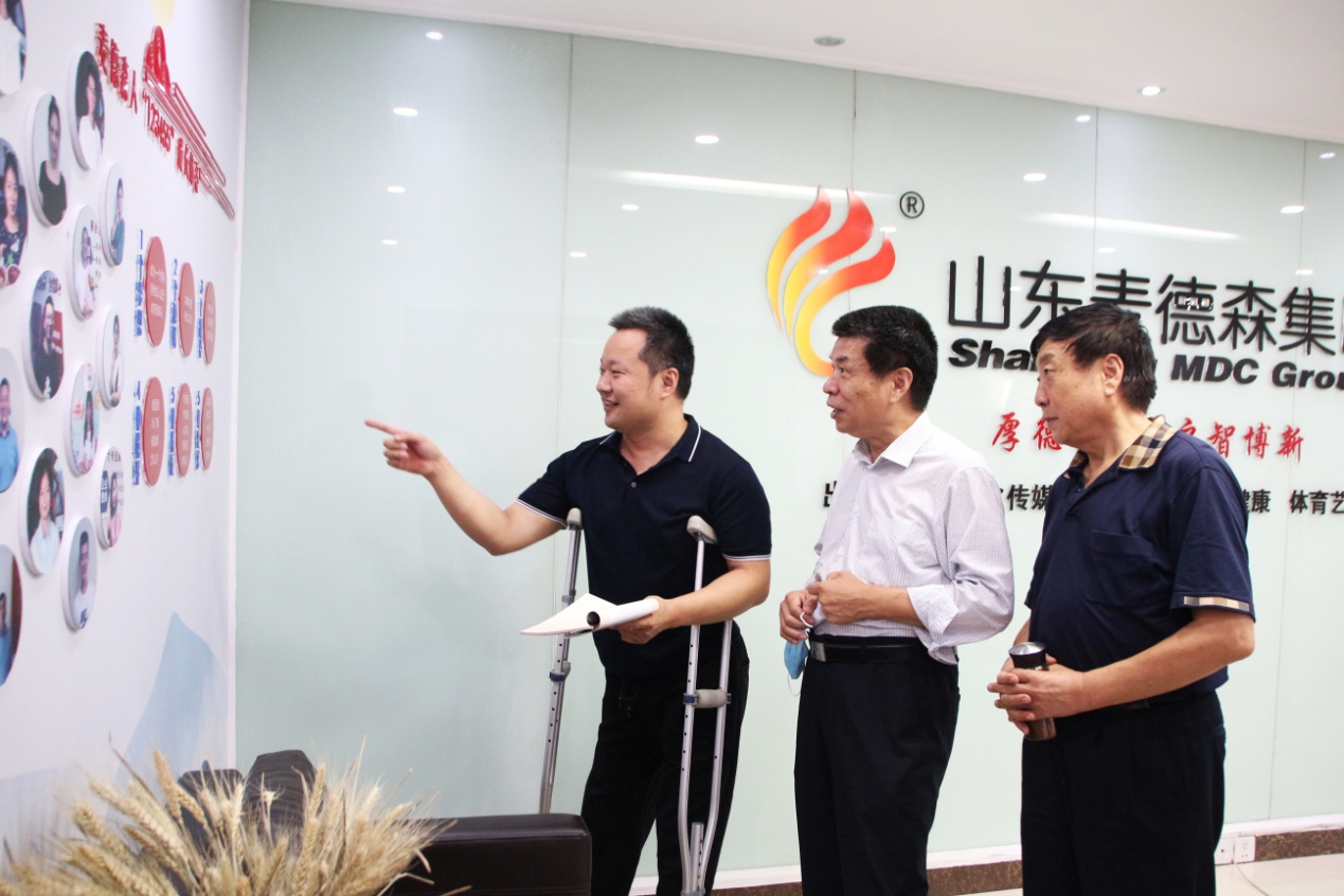 在王勇博士的引导和讲解下,郭簃秘书长、张振江部长等领导对集团总部进行了参观。参观过程中,王勇博士向各位领导详细介绍了麦德森企业文化、“长鼓型”党建工作法以及各事业部发展建设情况。