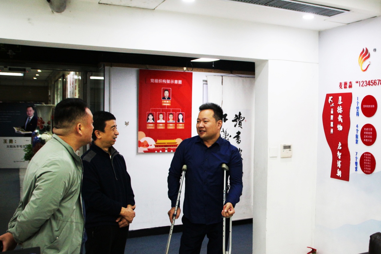 在王勇博士的引导下,柳鲁生一行对集团办公区域进行了参观。参观过程中,王勇博士向各位领导详细汇报了集团发展历程、企业文化、“长鼓型”党建工作法以及集团在扶贫、助残等方面所做的工作。他表示,企业履行社会责任是企业文化的重要内涵,也是企业文化建设的传承与发展。麦德森在建设和发展过程中积极承担社会责任,无论是残障人士、贫困家庭、还是孤寡老人,只要是需要帮助的人,麦德森都将让大家更有获得感。