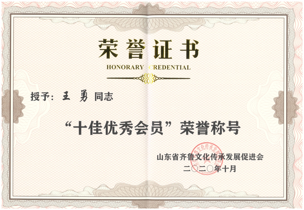 王勇博士应邀参加山东省齐鲁文化传承发展促进会年会并荣获“十佳优秀会员”