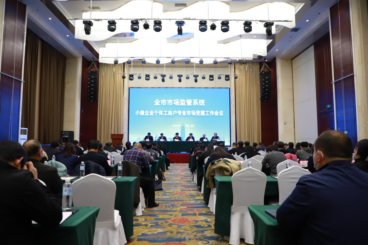 随后,济南市小微企业个体工商户专业市场党建工作会议在市鸿腾国际大酒店召开,省市场监管局副局长郭之祥、市委组织部副部长宁延学、市市场监管局党组书记刘永浩等出席会议并讲话。山东省和济南市市场监管局、济南市直有关部门负责同志,“小个专”党组织代表等约150人参加会议。