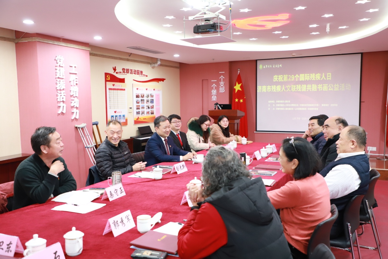 12月3日,庆祝第29个国际残疾人日暨济南市残疾人文联残健共融书画公益活动在飞极速在线多功能会议室举行。