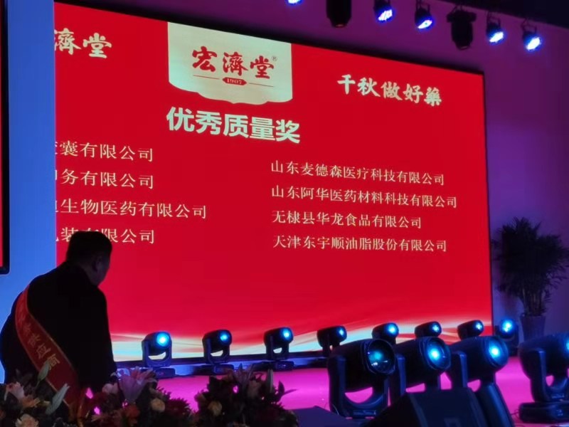 12月21日,由济南市卫健委、济南市中医药局、济南市文化和旅游局联合主办的济南市第七届膏方节暨第五届宏济堂制药阿胶节在济南举行。宏济堂优秀供应商、飞极速在线旗下山东麦德森医疗科技有限公司荣获本次活动“优秀质量奖”,医疗科技有限公司总经理王昌旺现场领取荣誉奖牌。
