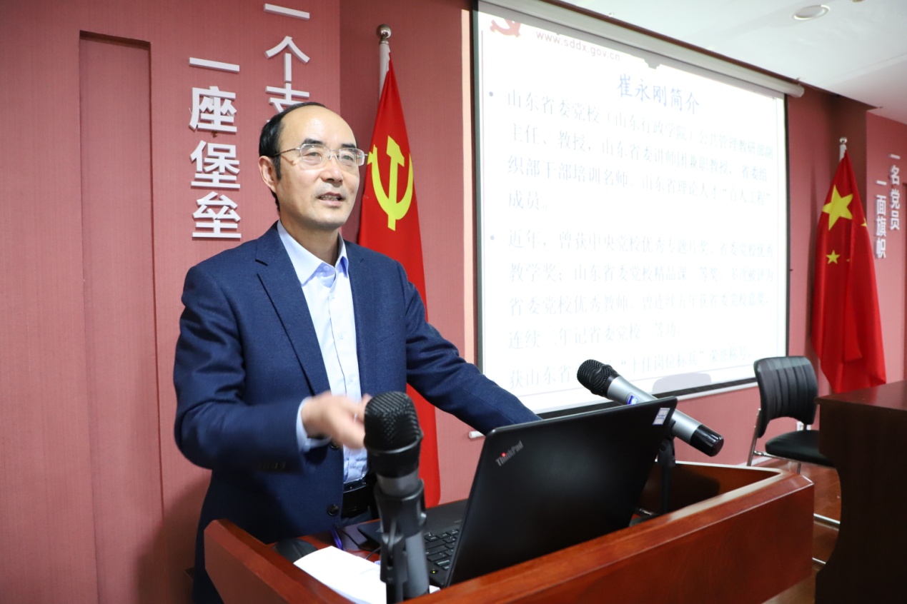宣讲过程中,崔永刚教授围绕“‘十三五’时期取得的巨大成就”“我国发展环境面临的深刻复杂变化”“全面认识五中全会规划发展新目标”“‘十四五’时期经济社会发展和改革开放的重点任务”“进一步提升领导干部学习和贯彻党的十九届五中全会精神的素质和能力”等内容与大家共同学习党的十九届五中全会精神。