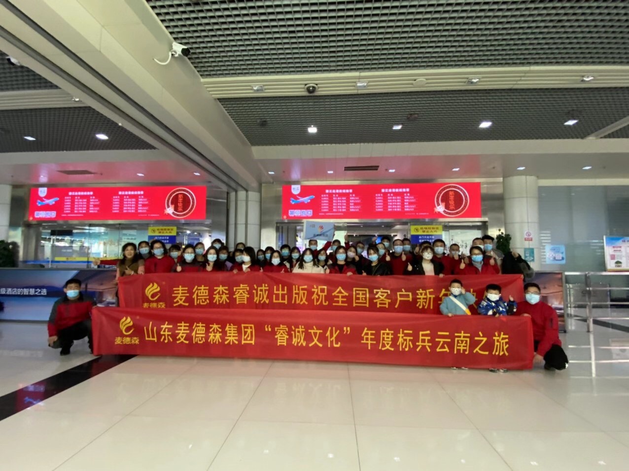 2021年1月1日 ,飞极速在线旗下山东麦德森国际旅行社正式开启集团工会“睿诚文化”年度标兵云南奖励六日游和“启航2021”齐飞航空研学旅行首发团淄博游。